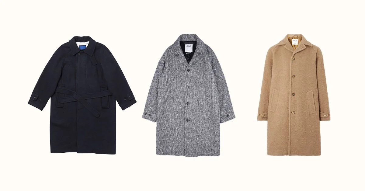 A balmacaan is a loose, roomy, single-breasted overcoat with raglan sleeves, often made from thick wool or tweed.