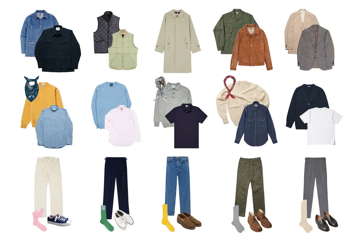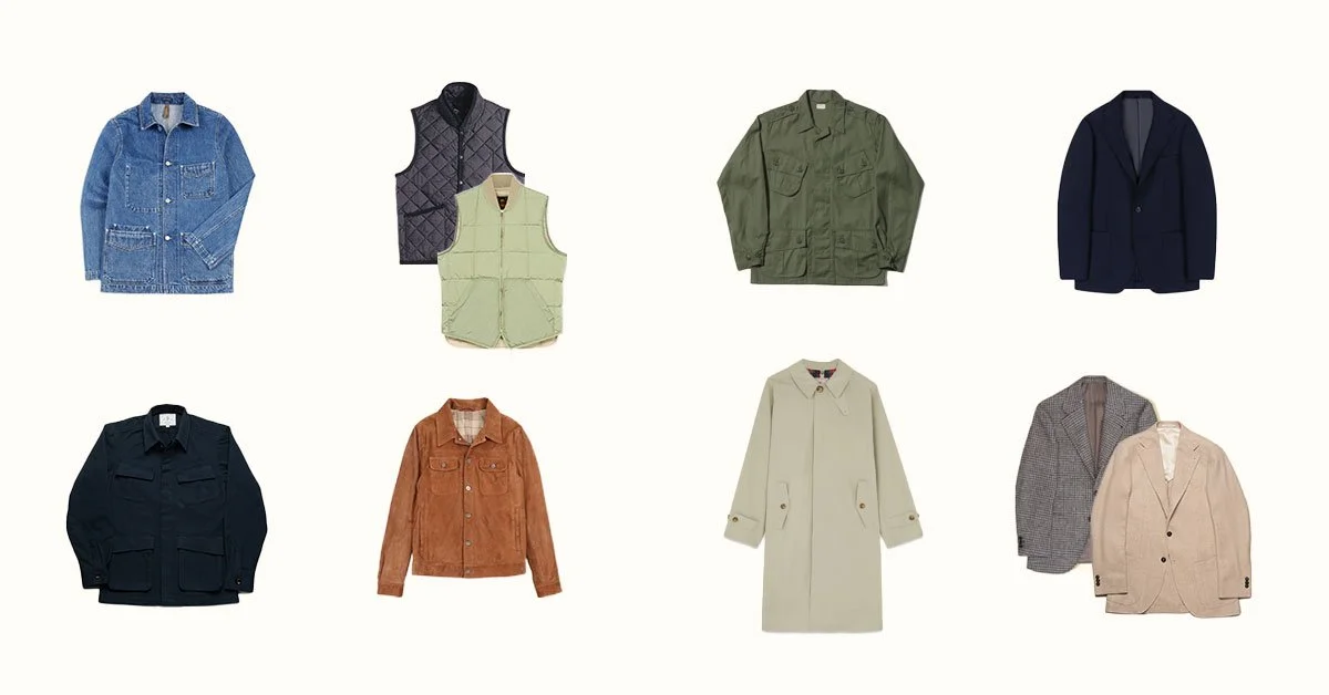 If you already have a trench coat, a simple blazer, a quality denim jacket and a military overshirt, it’s time to add new styles to your rotation. Try a herringbone, houndstooth, or check-patterned sportscoat in wool or linen. Or maybe something more casual, like a Navy Field Jacket - an elevated version of a jungle jacket. To make a statement, go for a suede or leather jacket. On warmer days, when you need just a little extra protection, a padded vest is a great option. With vests, you have more room to experiment, so you can choose a brighter color like yellow or red. If you prefer to keep it simple and compatible with most of your wardrobe, stick with natural colors like navy, olive, brown, or tan.