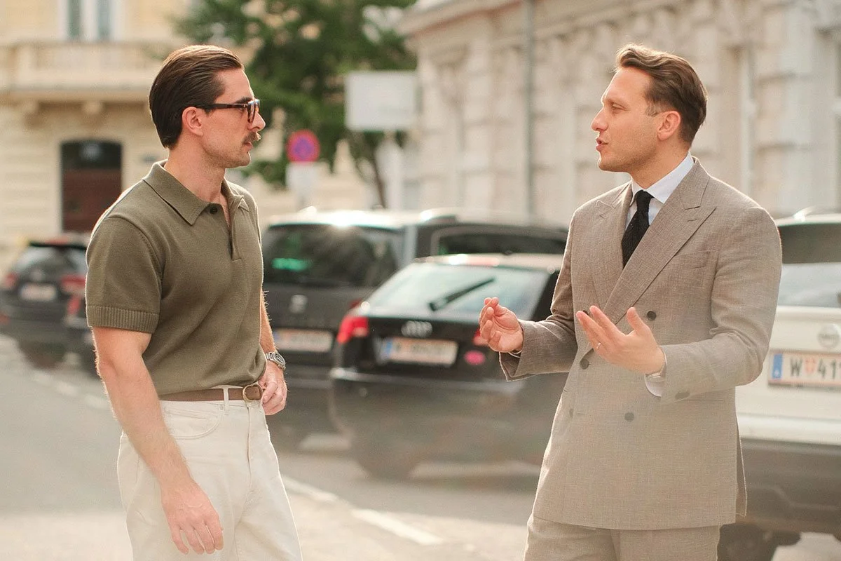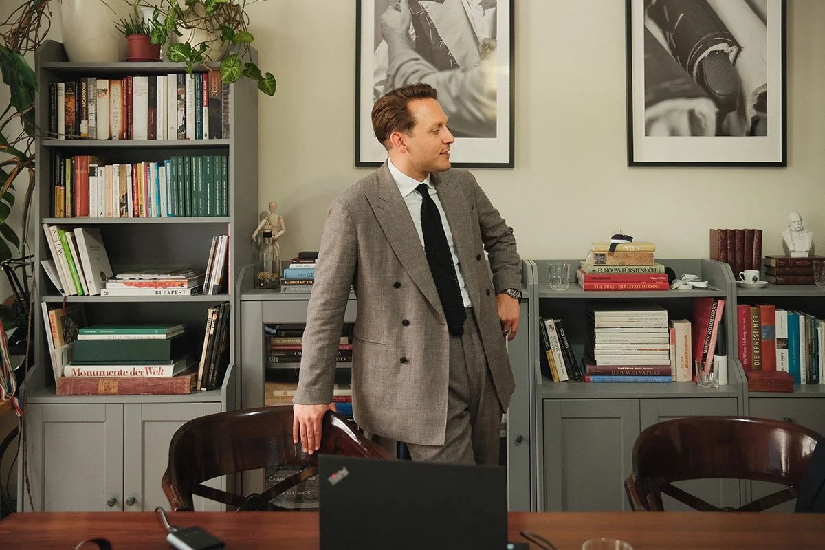Milan is a made-to-measure specialist and has his own clothing brand that he started in 2019, focusing on tailoring, which he also combines with some casual pieces like knitwear and denim. His atelier is located in Budapest. Before starting his own business, he already had around 10 years of experience in fashion, where he started as a stylist and later worked for Simon Skottowe, a Budapest-based British tailor, where he helped build the label and was also involved in the bespoke process. I met Milan when he invited me to his trunk show in Vienna to check out his collection.