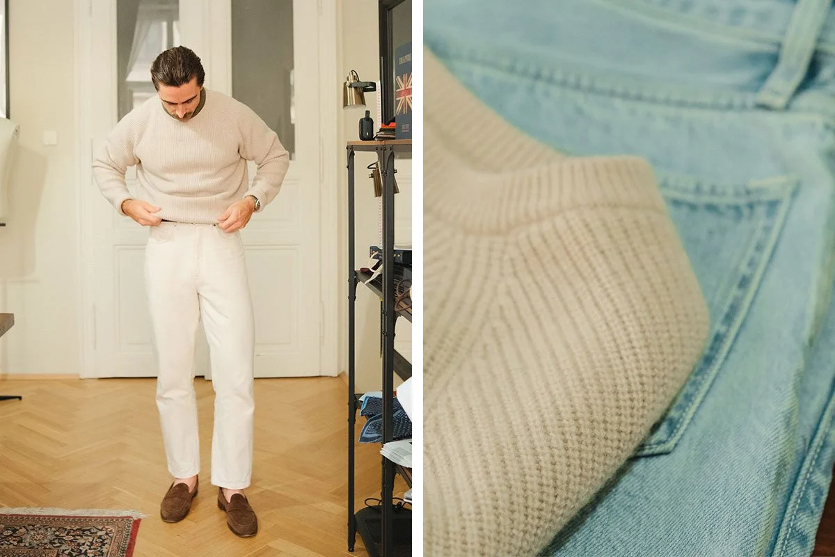 The most interesting for me was that he also offers made-to-measure knitwear and denim, which is not really common for most made-to-measure brands. It’s not easy to find knitwear and denim with a perfect fit, especially if you don’t have “standard” body proportions (for example, I find all knitwear too long in the size that fits me). So I’m sure this is very welcome information for all guys who are more casual dressers, because they know they’re paying for a perfect fit.