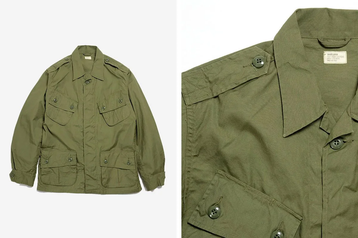 Jungle Jacket is without a doubt one of the most recognized pieces of military clothing. This one is an accurate reproduction of the early version of the jacket, which comes with epaulettes and exposed buttons on the pockets - all of these details were removed or changed in later versions for practical reasons.