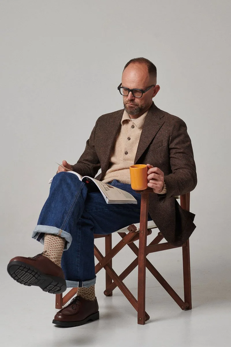 Dark indigo jeans is perfect for dressing up and wearing with more tailored pieces. And don’t get me wrong - it also looks great just with a white tee, a military overshirt, or a leather jacket. But even when worn very casually, like in the examples above, it still appears a bit more polished. I’d call it a bit more serious - it has more of a military appeal, probably because we’re used to seeing it in old military photos and movies. Another thing to note is that the material is stiffer and you can see that in how it wears and behaves. On the contrary, washed blue jeans are softer and more comfortable. The difference in how they look and feel is quite obvious if you’ve worn both.
