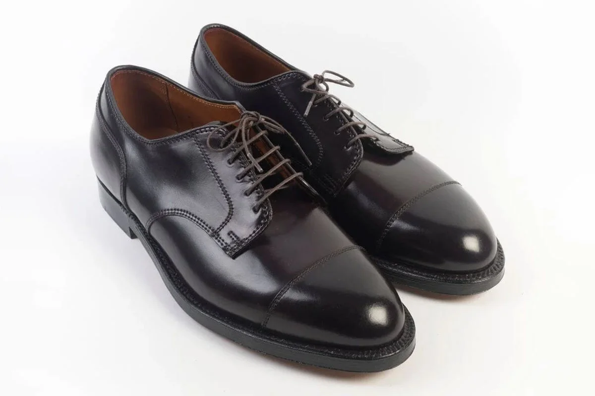 The toe cap makes this style a bit less formal than a plain Derby, so you might not wear it with very formal outfits. Any decorations, like broguing, are usually just on the edge of the toe cap.